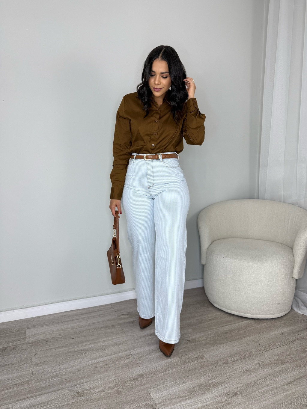 Camisa Núbia é uma peça clássica mais alongada e atemporal do guarda roupa feminino, com listras que transmite elegância e moderdinade, proporciona: conforto, segurança, durabilidade e frescor. Possui um estilo único e transita em todos os ambientes, podendo ir do casual até o clássico/elegante. Ideal para compor vários looks, desde o trabalho até um encontro com as amigas. Ela possui alto conforto,cido que transpira bem e durabilidade pela qualidade! Você nunca mais vai querer saber de outra camisa! Possui botões na frente e no punho, modelagem solta tradicional, trazendo modernidade, elegância e sofisticação, para suas produções com looks e uma estética Esay chic.